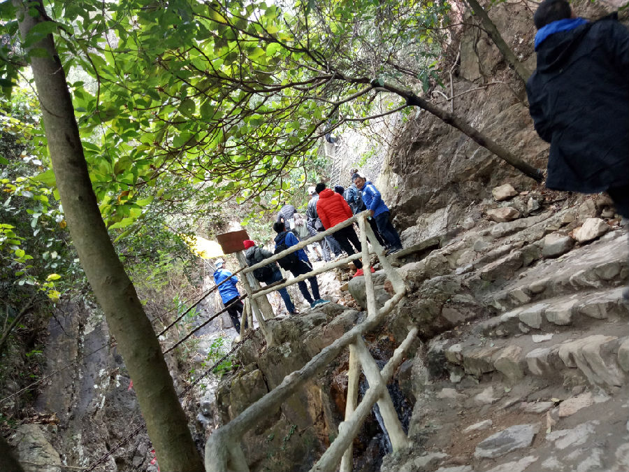 在風(fēng)景區(qū),同事們相互扶持上山,沒有一個(gè)人中途掉隊(duì)和退出,一起來到了這里有名的玻璃棧道,同事們一個(gè)個(gè)克服心中恐懼,相互給予鼓勵(lì),扛著奧得富大旗勇敢前進(jìn)。