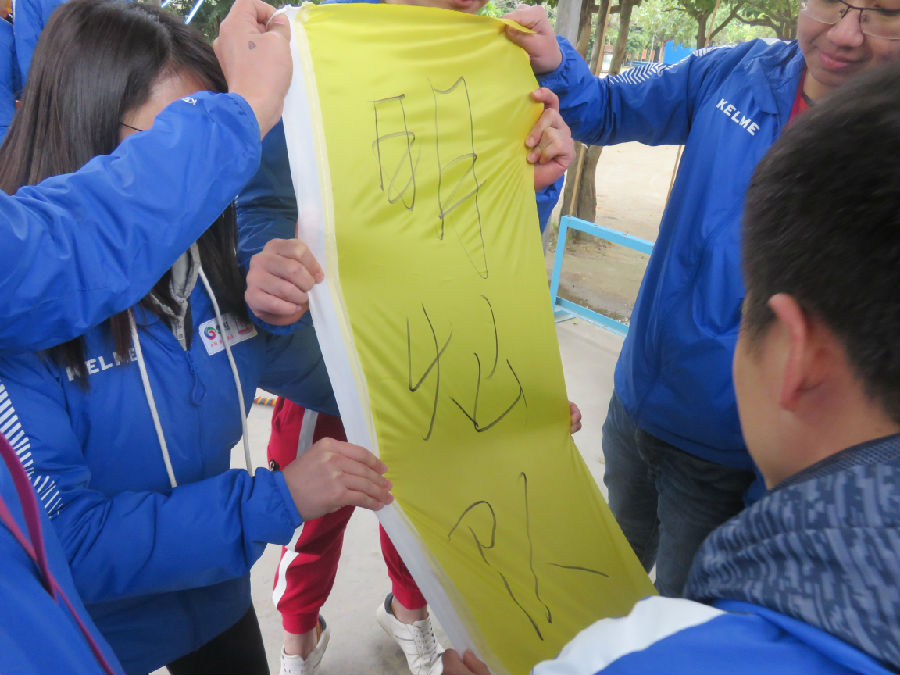 另外,教練要求大家協(xié)作完成一個(gè)人在繩子上走一圈的任務(wù),大家紛紛推薦汪經(jīng)理“走一圈”,雖有緊張和不安,憑著每人的鼓勵(lì)支持和汪經(jīng)理對(duì)大家的信任,順利的完成了這看似危險(xiǎn)的任務(wù)。