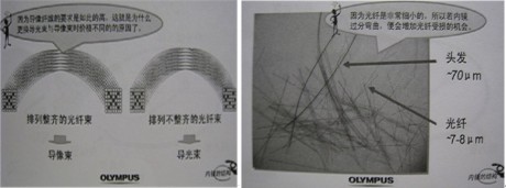 插入部的零部件10:光束與像束的補充。相同點:均由數(shù)萬根玻璃纖維組成(約1萬 — 5萬 ),纖維極細,約為頭發(fā)絲的 1/10 ,柔軟可彎曲。不同點:如下圖所示,導像束的光纖排列整齊,兩端完全一致,所以價格昂貴。導光束的光纖對排列沒有要求,所以價格便宜。